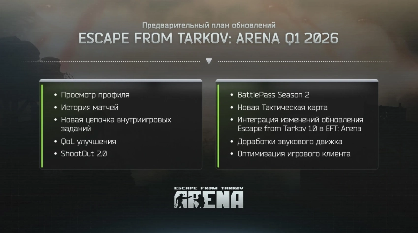 Обложка: скриншот Escape From Tarkov: ArenaАвторы Escape From Tarkov: Arena рассказали о новинках, которые ждут игроков в первом квартале 2026 года. До конца марта в шутере должна появиться возможность заглядывать в профили и просматривать историю матчей. Не обойдётся и без других неназванных QoL-улучшений.